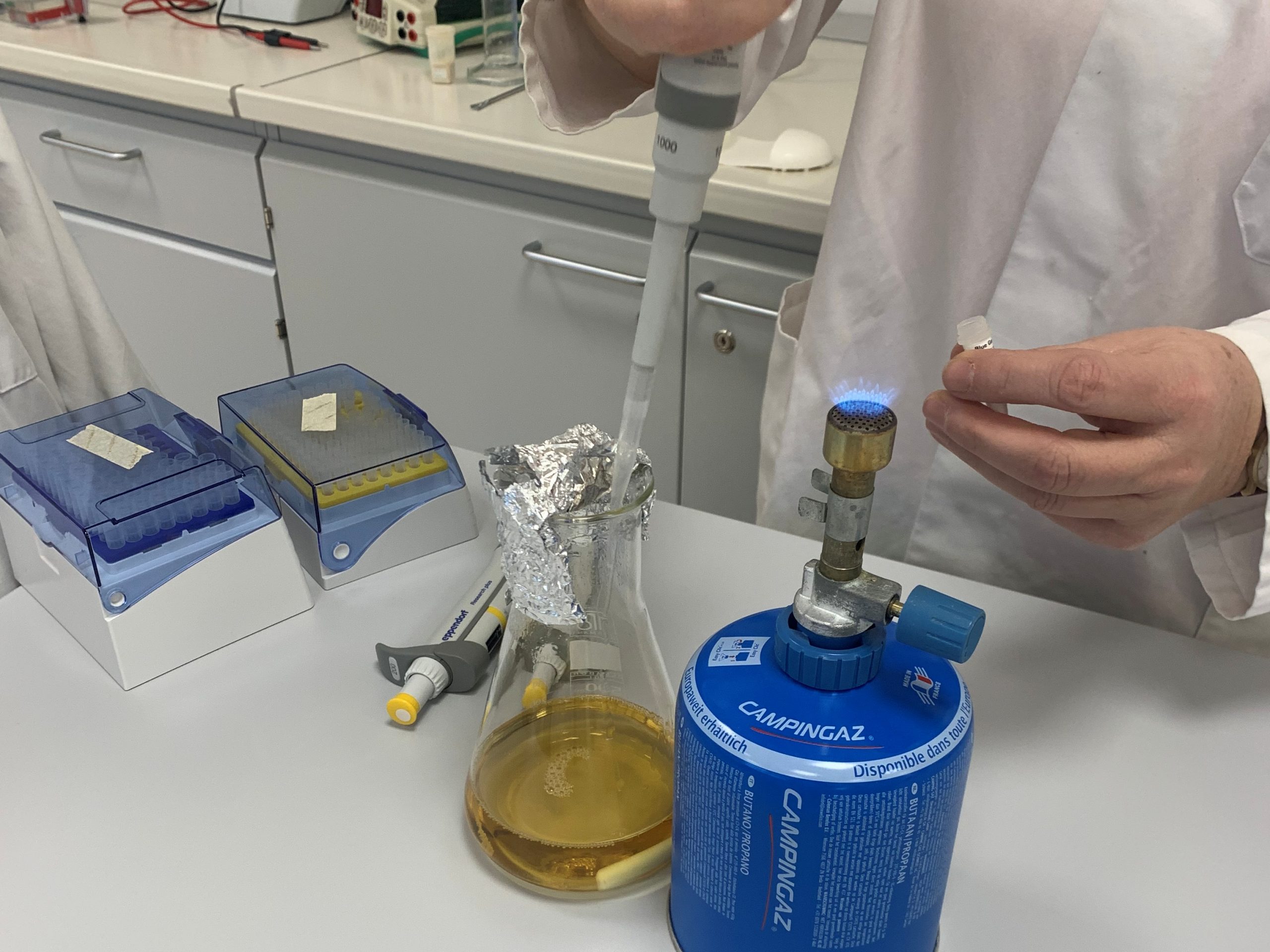 Nach dem Aufbringen der Bakterien auf zuvor gegossene Agarplatten und anschließender Inkubation zeigten die Schülerinnen und Schüler großes Engagement beim Anwenden zahlreicher mikrobiologischer Methoden: vom präzisen Pipettieren über steriles Arbeiten und das Herstellen von Agarplatten bis hin zur Durchführung einer Gelelektrophorese.