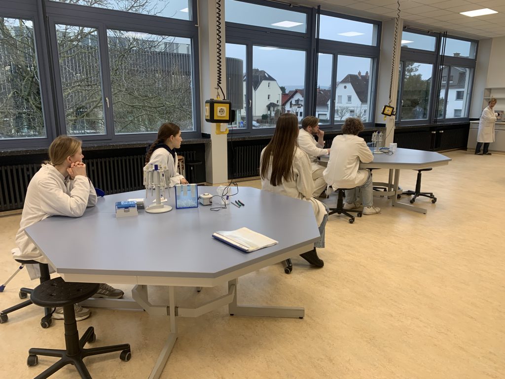 Die Schüler:innen des Biologie-Leistungskurses der Q2 erzielten beeindruckende Ergebnisse bei gentechnischen Experimenten an E. coli-Bakterien im B!Lab-Biolabor Brakel und stellten bei ihrer Exkursion Anfang Dezember ihre fachlichen Kompetenzen unter Beweis.