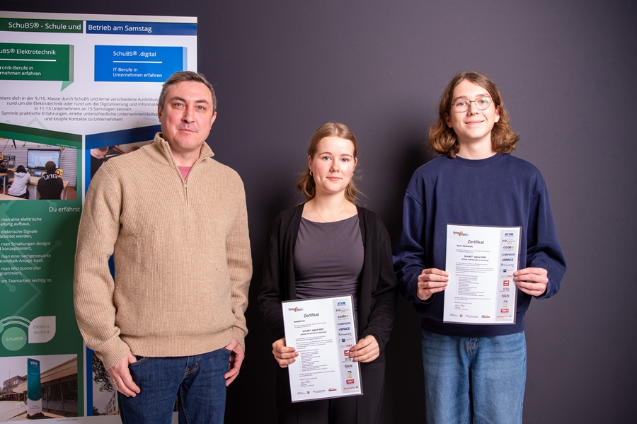 Seit Februar haben unsere Schüler:innen Amelie Fox und Henri Ostenholz erfolgreich am Berufsorientierungsprogramm SchuBS® digital 2025 teilgenommen. An 15 Samstagen lernten die Jugendlichen zwölf Unternehmen und Institutionen rund um die IT-Branche kennen.