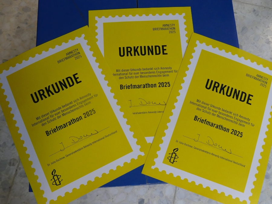 Für dieses Engagement haben wir nun eine Urkunde von Amnesty International erhalten. Ein starkes Zeichen dafür, dass junge Menschen aktiv für Menschenrechte eintreten können.