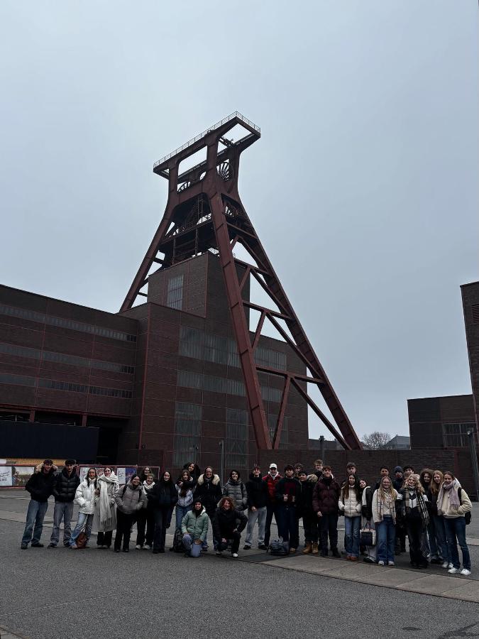 Am Mittwoch hatten wir die Gelegenheit, gemeinsam mit unseren Austauschschüler:innen einen besonderen Ort im Ruhrgebiet zu besuchen: die Zeche Zollverein in Essen. Der Ausflug war nicht nur spannend, sondern auch sehr lehrreich – vor allem für unsere Gäste aus Spanien, die einen wichtigen Teil der deutschen Industriegeschichte kennenlernen konnten. Bei einer Führung erfuhren wir, dass die Zeche früher eines der größten und modernsten Steinkohlebergwerke der Welt war. Tausende Arbeiter waren hier beschäftigt, und der Bergbau prägte das Leben der Menschen im Ruhrgebiet über viele Jahrzehnte.