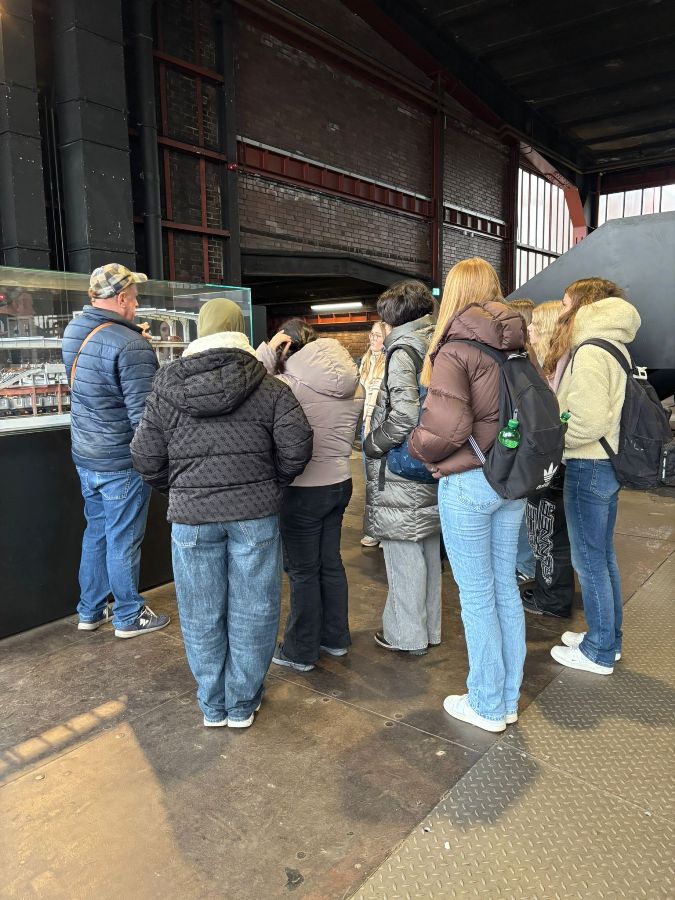 Heute ist die Zeche Zollverein ein Museum und ein kultureller Treffpunkt und wurde zum UNESCO-Welterbe ernannt. Statt abgerissen zu werden, wurde das Gelände nachhaltig umgestaltet. Der Besuch zeigte uns, wie ehemalige Industrieanlagen sinnvoll weitergenutzt werden können – etwa für Bildung, Kultur und Tourismus. Der gemeinsame Tag in Essen war ein echtes Highlight unseres Austauschs und half uns, Geschichte, Nachhaltigkeit und Kultur miteinander zu verbinden.