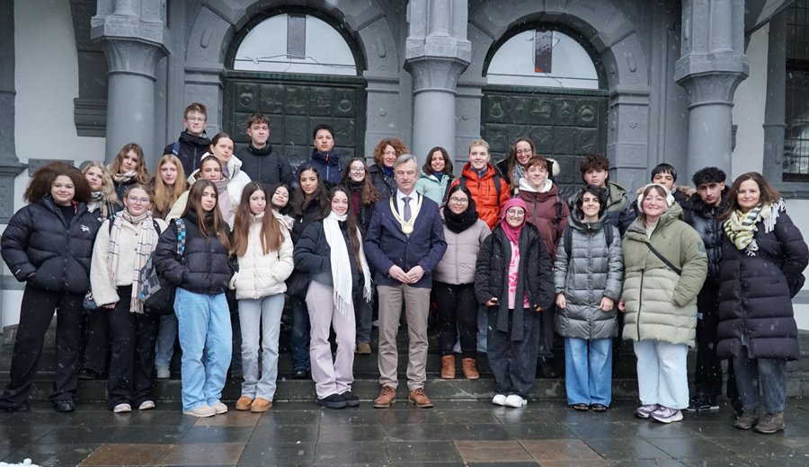 Am Donnerstag unserer Austauschwoche stand Paderborn im Mittelpunkt. Ein besonderer Programmpunkt war der Besuch im historischen Rathaus der Stadt Paderborn. Dort wurden wir vom stellvertretenden Bürgermeister, Herrn Siemensmeyer, empfangen, der uns willkommen hieß und die Bedeutung internationaler Schülerbegegnungen für Europa betonte. In seiner Vorstellung der Stadt ging er auf zentrale Aspekte der Stadtgeschichte und -entwicklung ein. Dabei sprach er unter anderem über den Einfluss von Heinz Nixdorf auf den Wirtschafts- und Technologiestandort Paderborn, über das traditionsreiche Libori-Fest sowie über die historische Bedeutung Karls des Großen und des Paderborner Doms. Außerdem stellte er Projekte zu nachhaltiger Energie und umweltfreundlicher Stadtentwicklung vor und erklärte, wie Paderborn versucht, Tourismus umweltverträglich, sozial gerecht und kulturbewusst zu gestalten.