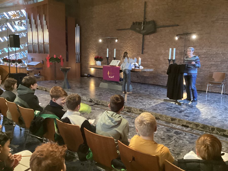 Passend zum ersten Advent hatten die Schüler:innen der Jahrgangsstufe 6 die Gelegenheit, im Rahmen des konfessionell kooperativen Religionsunterrichts (KoKoRU) zwei festlich geschmückte Kirchen ihrer Heimatstadt zu besuchen: das evangelische Johanneszentrum und die katholische Kirche St. Georg. Ziel war es, die Vielfalt des christlichen Glaubens und die Bedeutung der Ökumene nicht nur theoretisch, sondern auch praktisch zu erfahren.