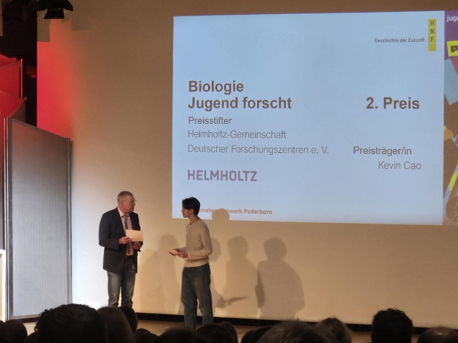 Beim diesjährigen Regionalwettbewerb „Jugend forscht“ waren die Projekte von Leni Becker und Kevin Cao (beide EF) erfolgreich: beide Forschungsarbeiten wurden mehrfach prämiert! Am Donnerstag, den 05. Februar traten sie zusammen mit 77 weiteren Teilnehmenden in zwei Alterskategorien mit insgesamt 44 Beiträgen aus den Kreisen Paderborn, Höxter und Soest zum Wettbewerb an.