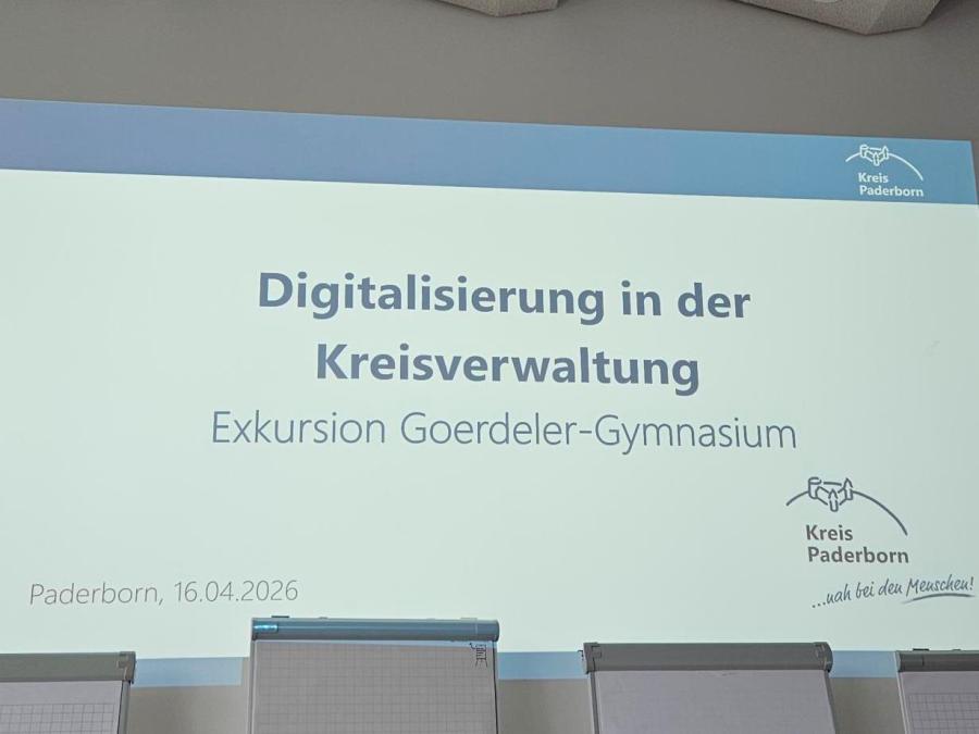 Im Rahmen einer dualen und praxisnahen Exkursion besuchten interessierte Schüler:innen der Jahrgangsstufe EF des Goerdeler-Gymnasiums den Kreis Paderborn, um einen Einblick in die Arbeit einer modernen Kreisverwaltung sowie mögliche berufliche Perspektiven zu erhalten. Die Exkursion wurde von der Fachhochschule der Wirtschaft (FHDW) organisiert und bot den Teilnehmenden eine wertvolle Gelegenheit zur Berufs- und Studienorientierung.