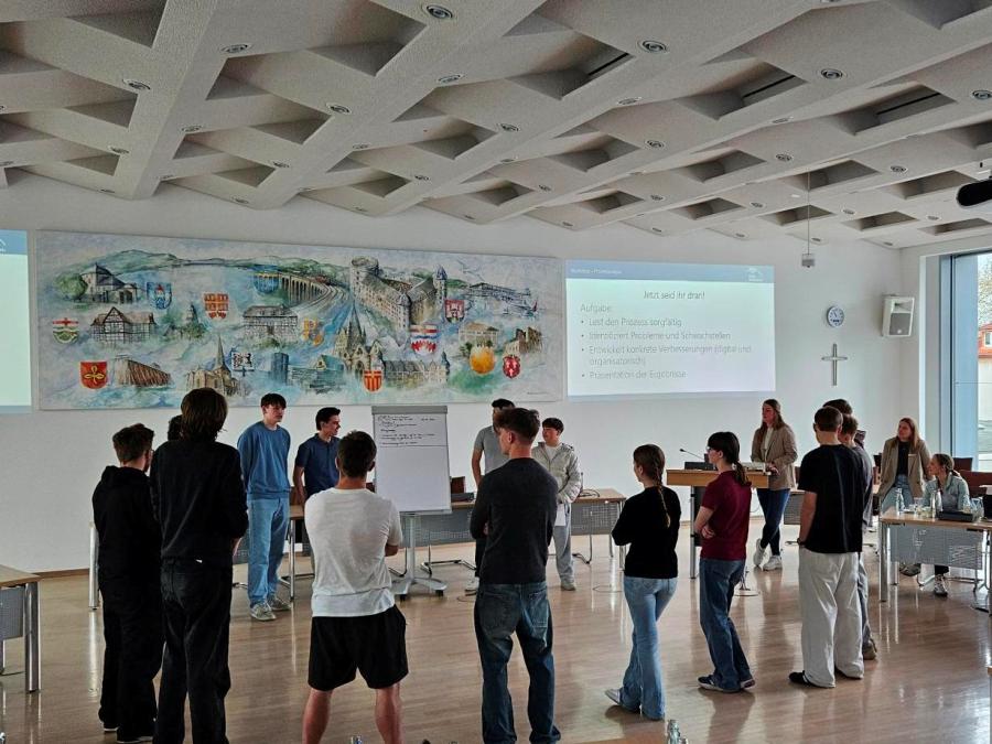 Nach der Begrüßung erhielten die Teilnehmenden eine Vorstellung der Kreisverwaltung sowie einen Überblick über deren vielfältige Aufgaben und Zuständigkeiten. Ergänzend wurden Studien- und Einstiegsmöglichkeiten vorgestellt, die für junge Menschen mit Interesse an einem dualen Studium attraktive Perspektiven eröffnen.