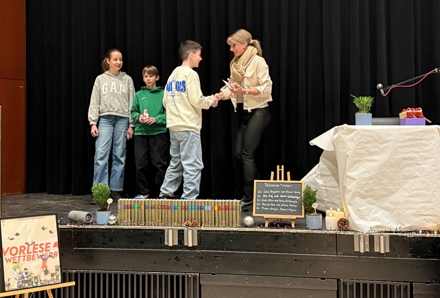 Beim Lesewettbewerb der 6. Jahrgangsstufe wurde Vincent Spady aus der Klasse 6a am 12. Dezember zum Sieger gekürt. Er wird unser Gymnasium im Frühling 2026 auf der Regionalebene des Vorlesewettbewerbs des Deutschen Buchhandels vertreten.