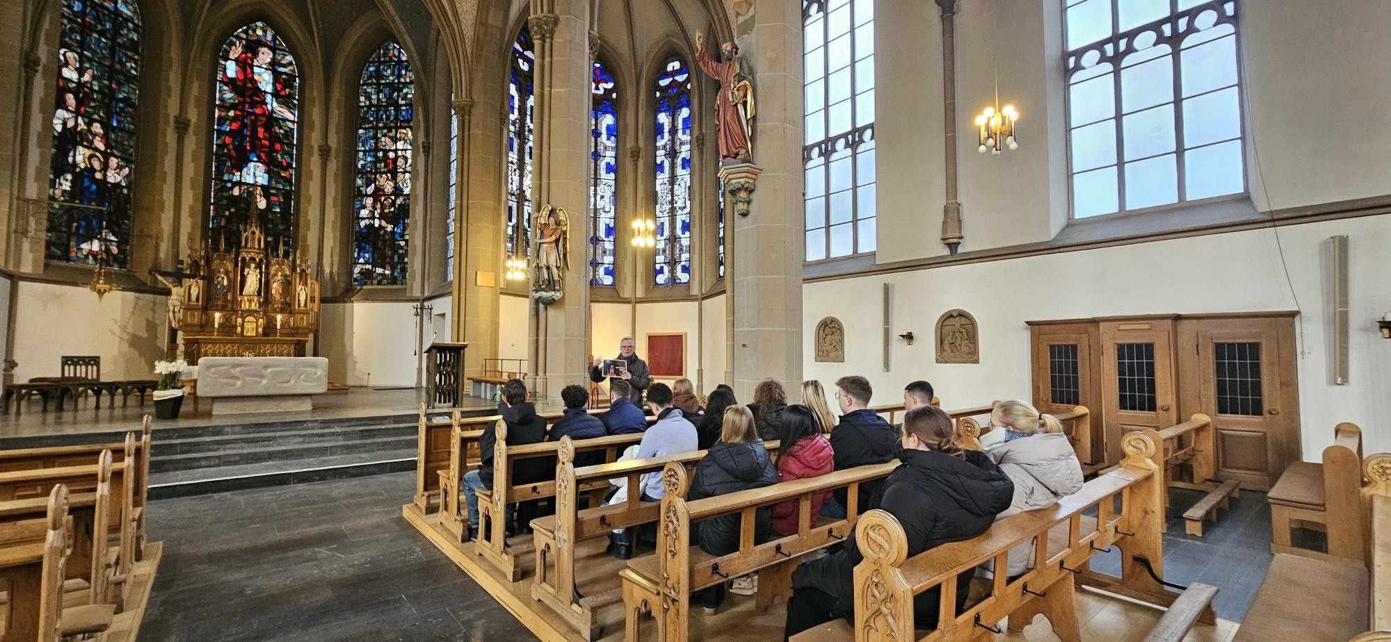 Der katholische Religionskurs der Jahrgangsstufe 10 dankt Herrn Pastor Roland Schmitz ganz herzlich für die offenen Einblicke in die Herz Jesu Kirche, seine Zeit, sein Engagement und die vielen spannenden Hintergrundinformationen, die diesen Lerntag zu einem besonderen Erlebnis gemacht haben.